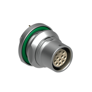 IP68 Sealed Low Profile Front Projecting Receptacle - Brass - Grey Mat - Series 105 - 24 Low Voltage - PCB - Female