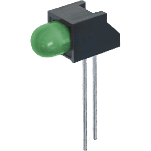 PC Board LED,5mm Dome Diffused,Right Angle,0.25"Wx0.25"H,Green,0.125" LED Centerline,5Vdc