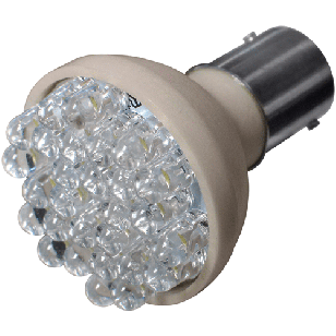 LED Bulb,Intermediate,Single Contact SC Bayonet Ba15s 1.950"Lx1.388"D,Pure White,28Vdc,1.4W 315, 705, 1591, 1665, 1683, 1691, 2232, 2233