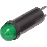 Panel Mount LED Indicator,Cartridge 2-Pin 9/32" Mtg.Dia.,Dome Lens,1.14"Lx0.335"D,Green,28Vdc