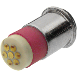 Miniature LED Lamp,Midget Flange T1-3/4 (SX6s),0.63"Lx0.285"FLG,Red,24Vdc,Negative Center 327, 376, 387