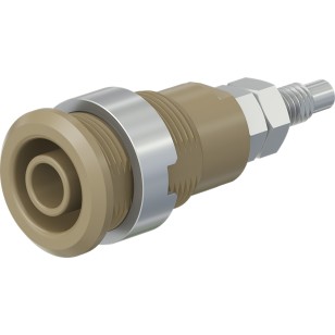Insulated, rigid, Ø 4 mm, accepting spring-loaded Ø 4 mm plugs with rigid insulating sleeve. Machined brass. The socket is screwed into pre-drilled panels of plastic, metal, etc.Connection: Threaded bolt M4 and soldering hole.